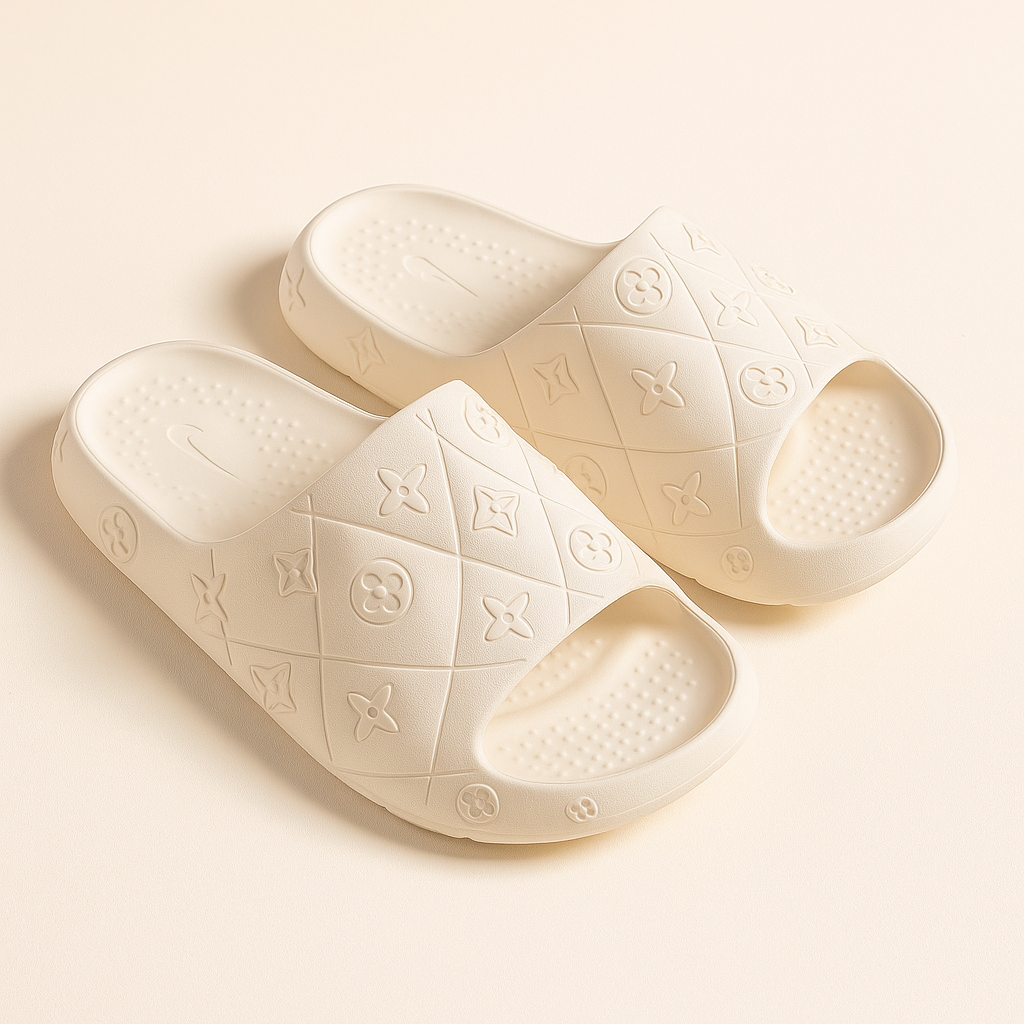 These Ivory Luxe Slides are designed to combine everyday comfort with a premium touch. Crafted in a soft off-white hue, they feature a lightweight cushioned sole and embossed detailing for a chic, modern look. The slip-on style makes them perfect for quick outings, lounging at home, or casual streetwear. Durable yet stylish, they’re your go-to pair for comfort that doesn’t compromise on elegance.