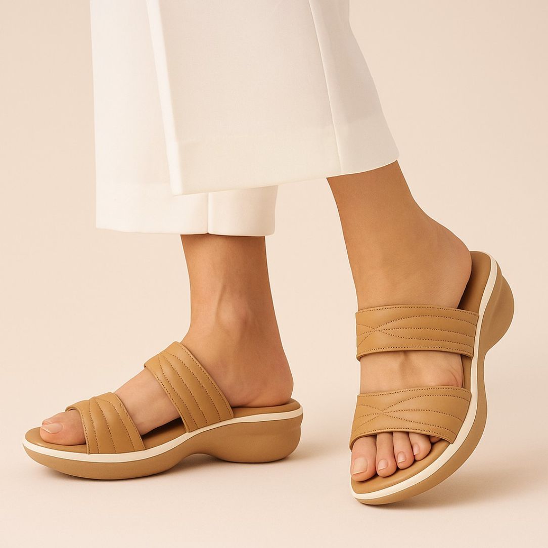 Step into all-day comfort with our Dual Strap Slip-On Sandals, designed for effortless style and maximum ease. Featuring soft cushioned straps with elegant stitching detail, these sandals offer a secure fit without any buckle or back strap. The lightweight sole provides excellent support, making them perfect for daily wear, casual outings, travel, or home use. Its soothing pastel color adds a chic and trendy touch to every outfit. Just slip on and go—fashion meets comfort in every step!