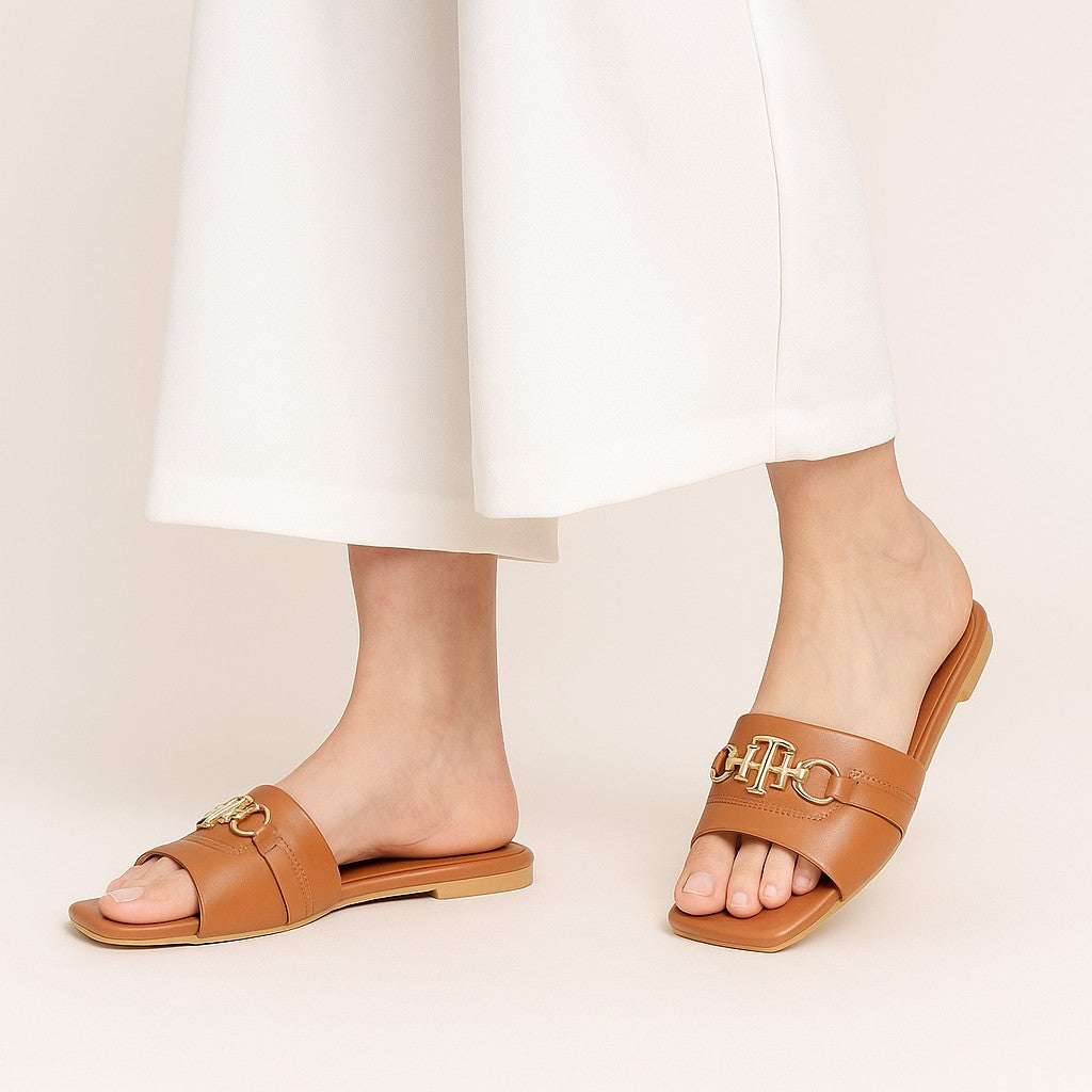 Step into timeless elegance with our Amber Charm Flats. Crafted in a rich tan leatherette finish, these slip-on flats are designed for both style and comfort. The chic square toe and premium metallic buckle detail add a luxurious edge, making them perfect for both casual and semi-formal wear. Lightweight, versatile, and effortlessly stylish—these flats will become your go-to pair for everyday sophistication.