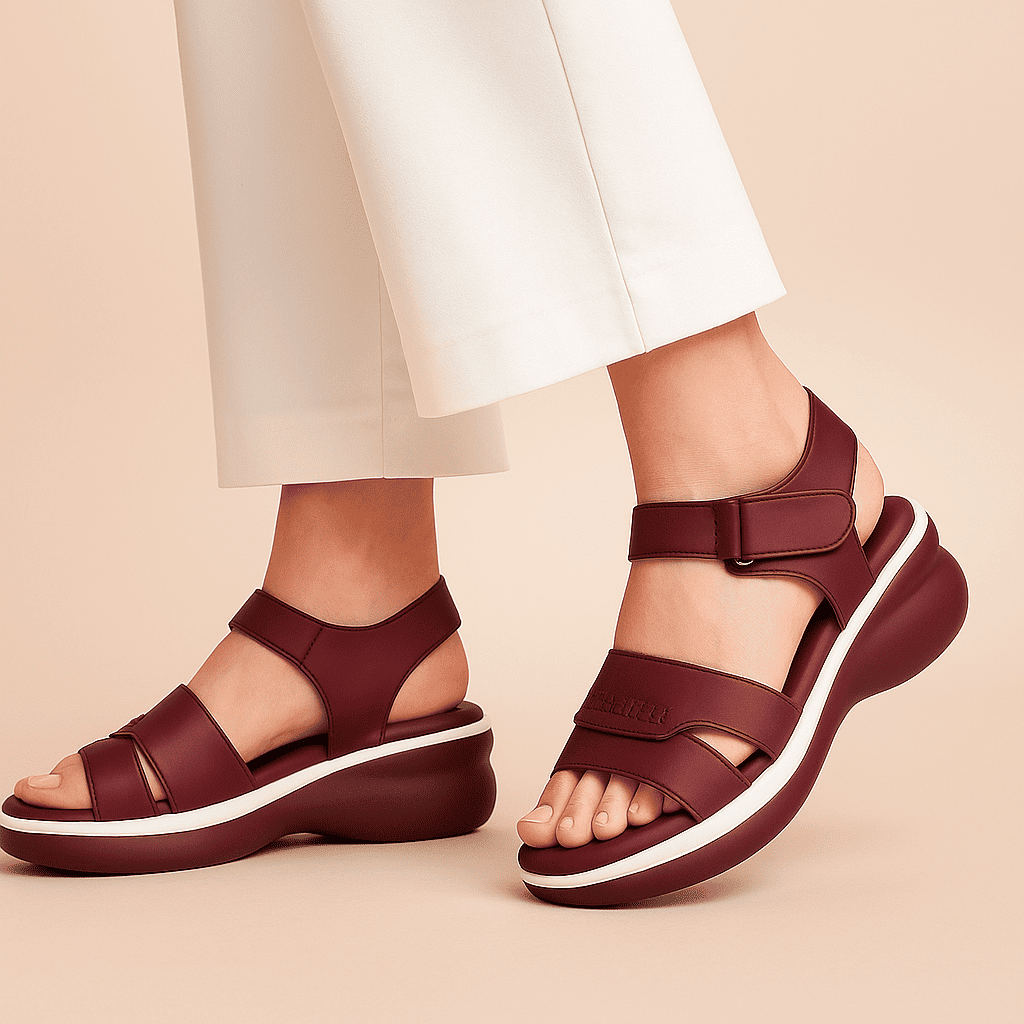 Step into effortless style with this rich maroon comfort sandal, designed with soft cushioned straps and a secure Velcro closure for an adjustable fit. The lightweight sole provides all-day support, while the sleek design adds a modern touch—perfect for casual outings, daily wear, or travel. A stylish blend of fashion and comfort in every step!