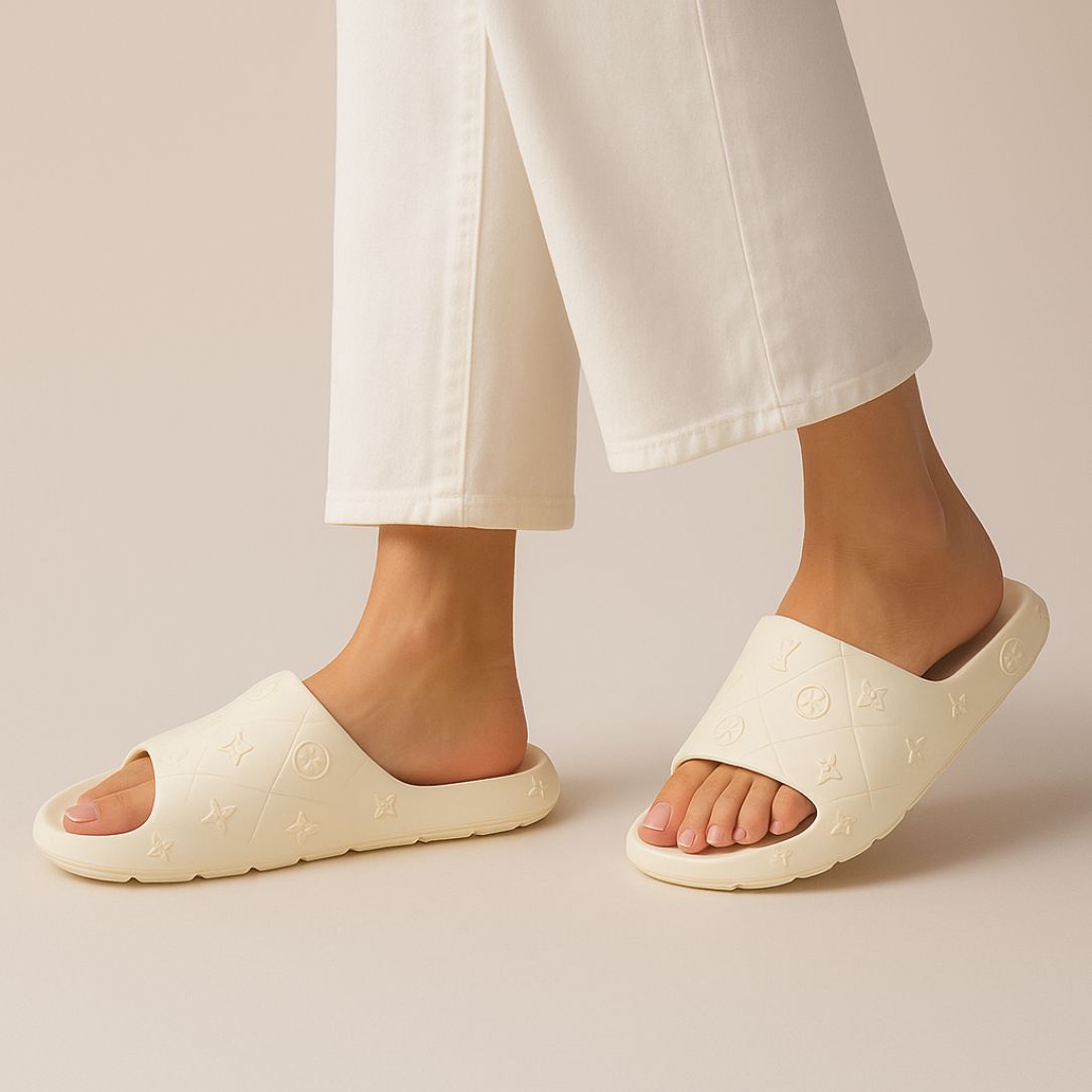 These Ivory Luxe Slides are designed to combine everyday comfort with a premium touch. Crafted in a soft off-white hue, they feature a lightweight cushioned sole and embossed detailing for a chic, modern look. The slip-on style makes them perfect for quick outings, lounging at home, or casual streetwear. Durable yet stylish, they’re your go-to pair for comfort that doesn’t compromise on elegance.