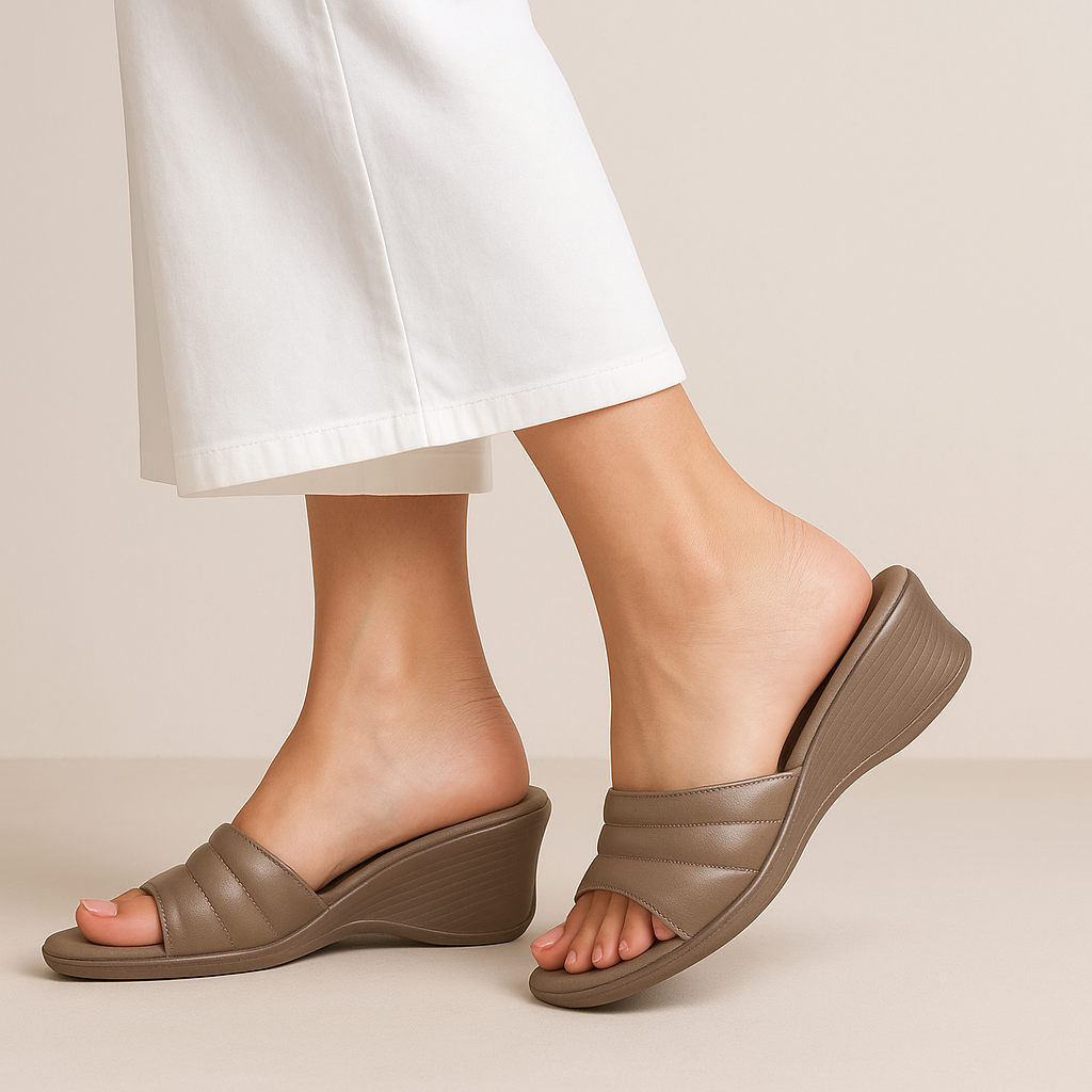 Soft wedges for women of all ages. It has very soft sole with 2 inch comfortable heel. Lining on front upper with four different colors.