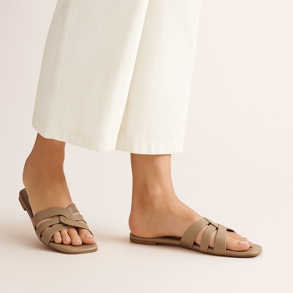 Step into effortless elegance with our Taupe Weave Slip-On — designed for women who love style, comfort, and everyday versatility. Crafted with soft, premium straps and a smooth cushioned footbed, this slip-on keeps your feet relaxed all day long. The chic cross-strap design adds a modern touch, making it perfect for casual outings, brunch dates, and daily wear.